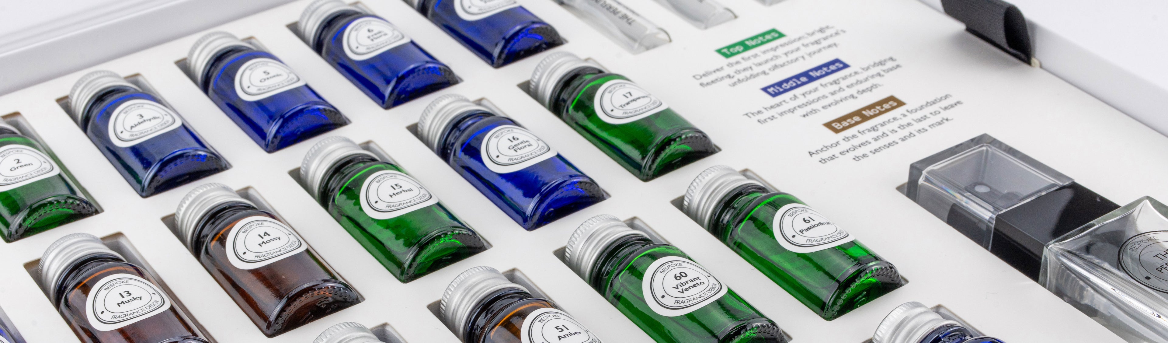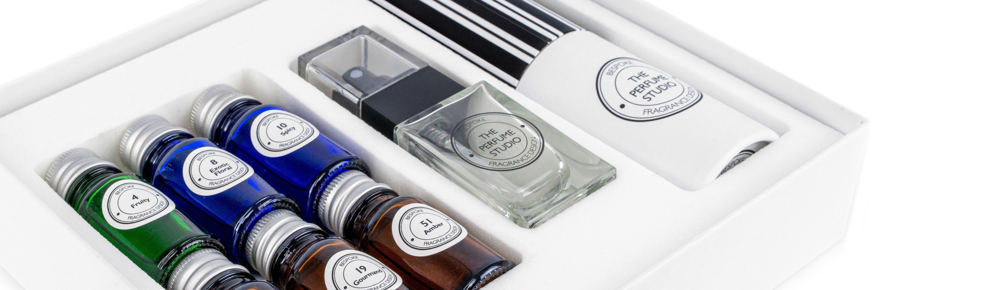 A luxury perfume-design kit featuring 24 exquisite Eau de Parfum blends, a designer atomiser, and all the tools to craft your signature scent at home.